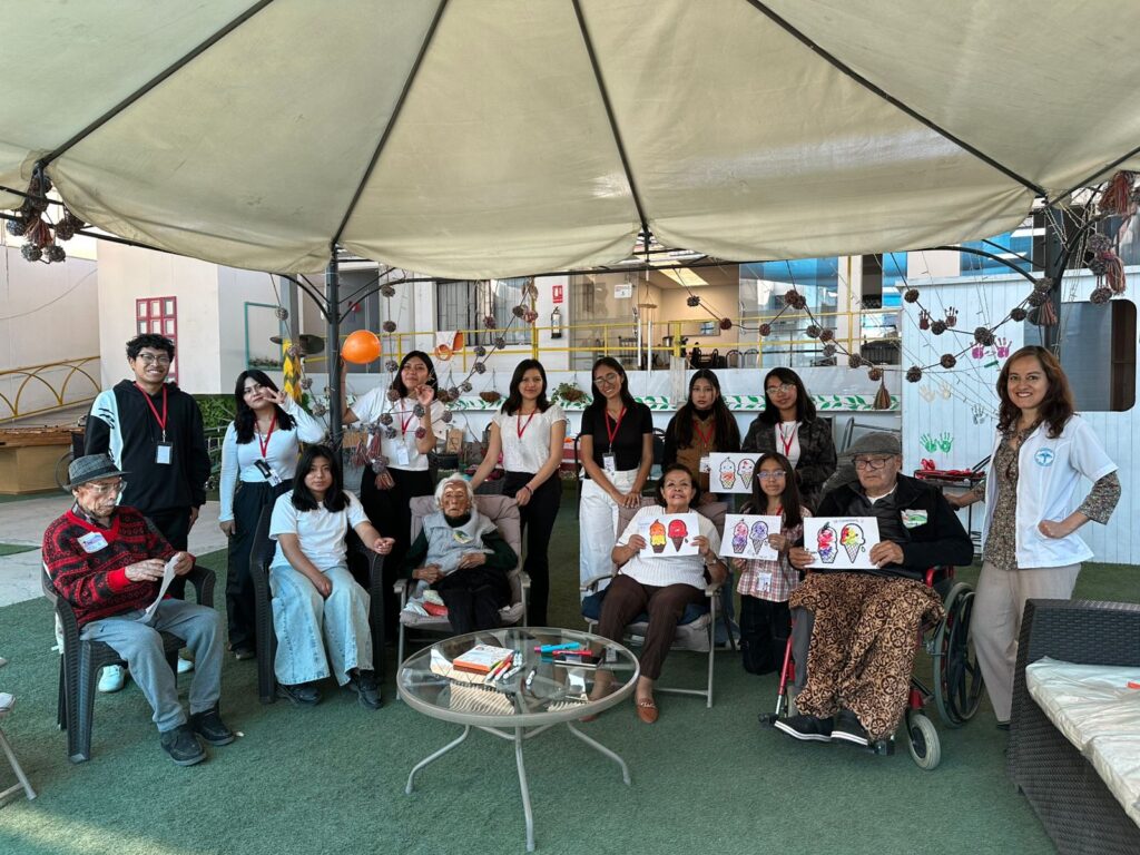 Jornada de acompañamiento integral dirigida a los adultos mayores de la Residencia San Miguel Arcángel, en la que se desarrollaron actividades lúdicas, artísticas y espacios de expresión afectiva, promoviendo el bienestar emocional y el valor del cuidado y el respeto intergeneracional.